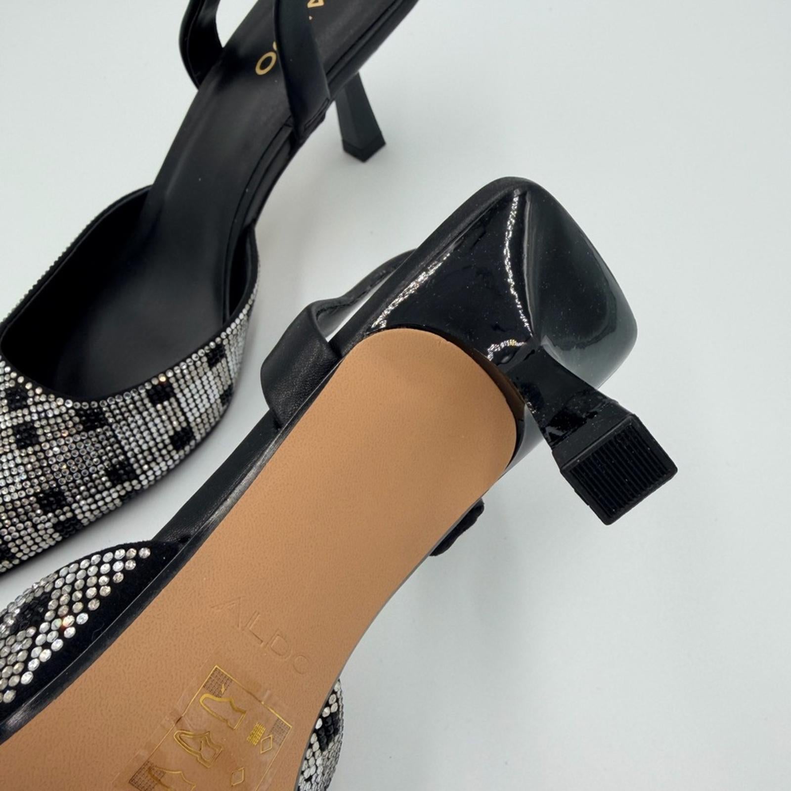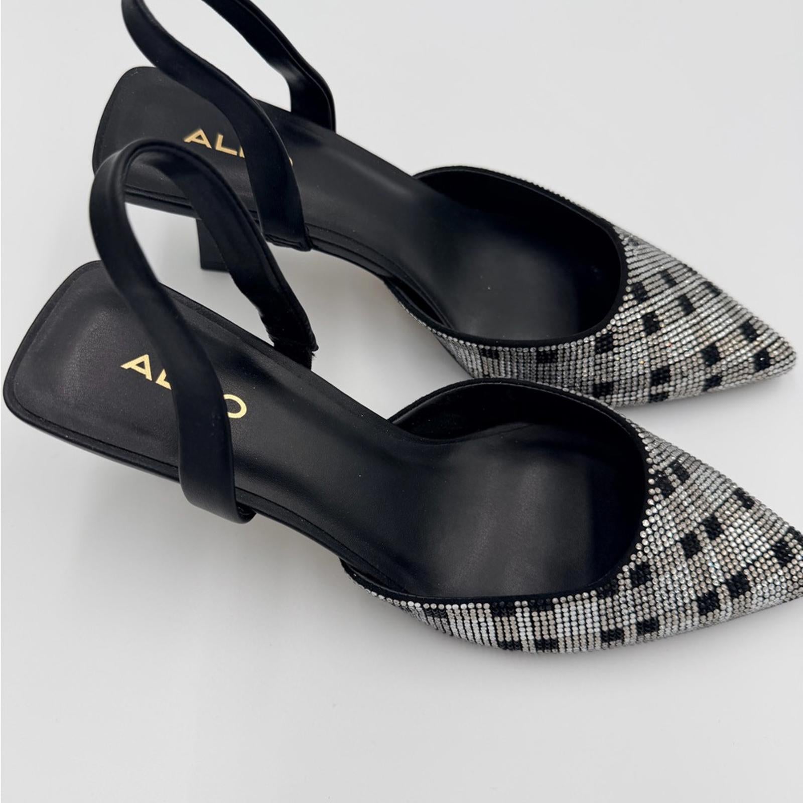 Chic Aldo heels with a striking checkered pattern. Perfect for a stylish look.
